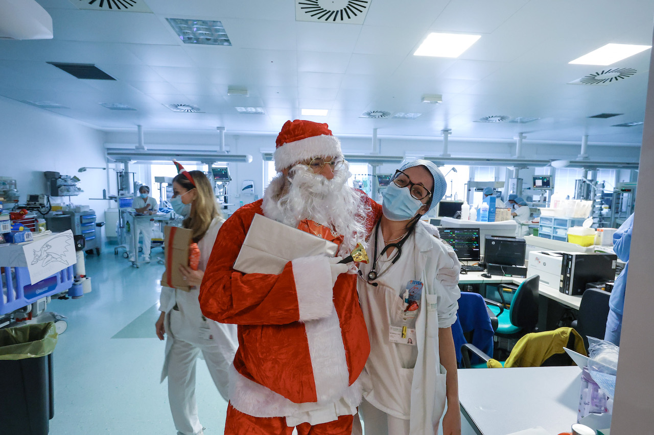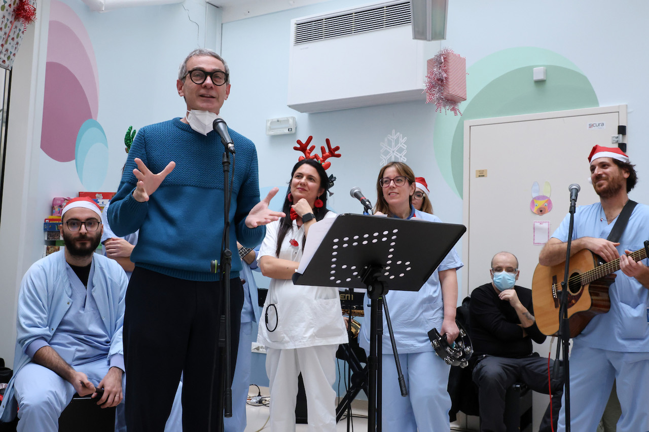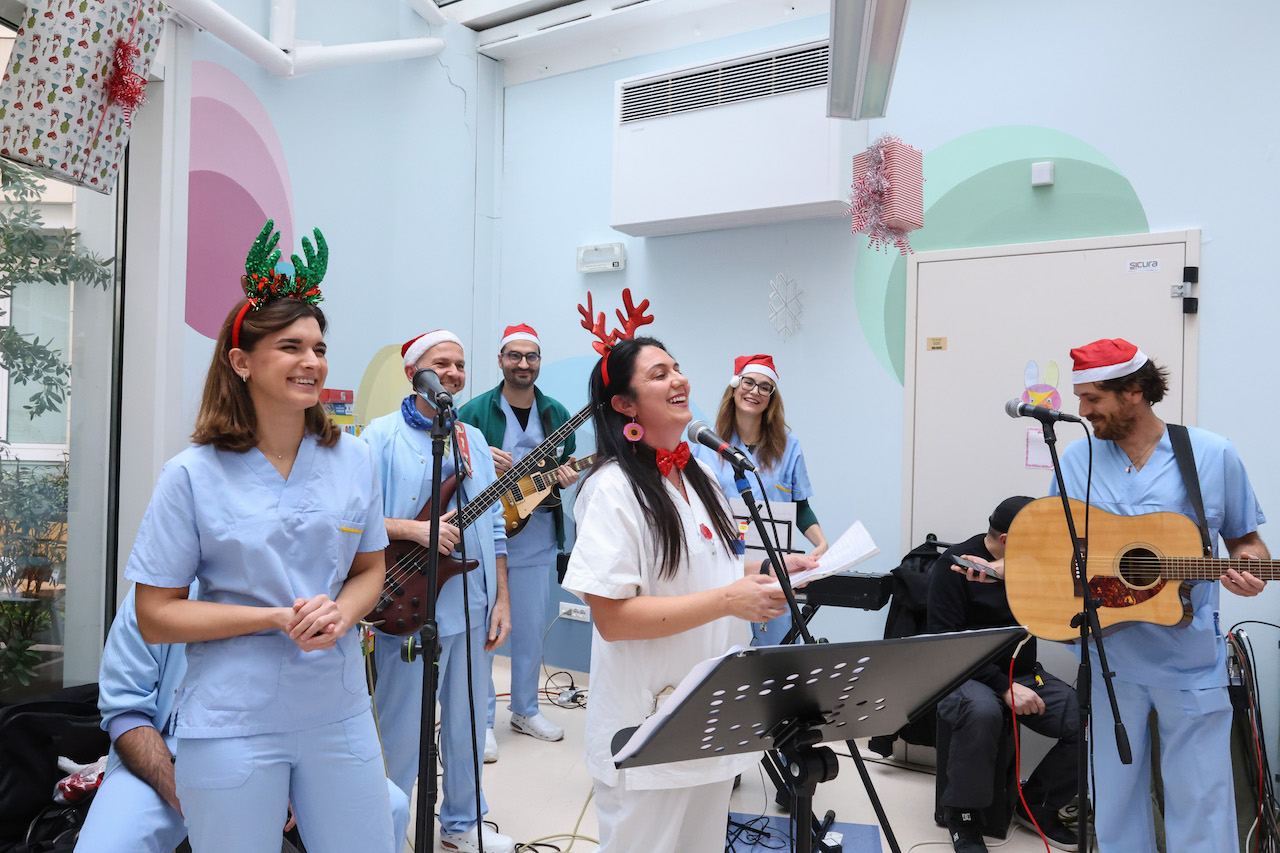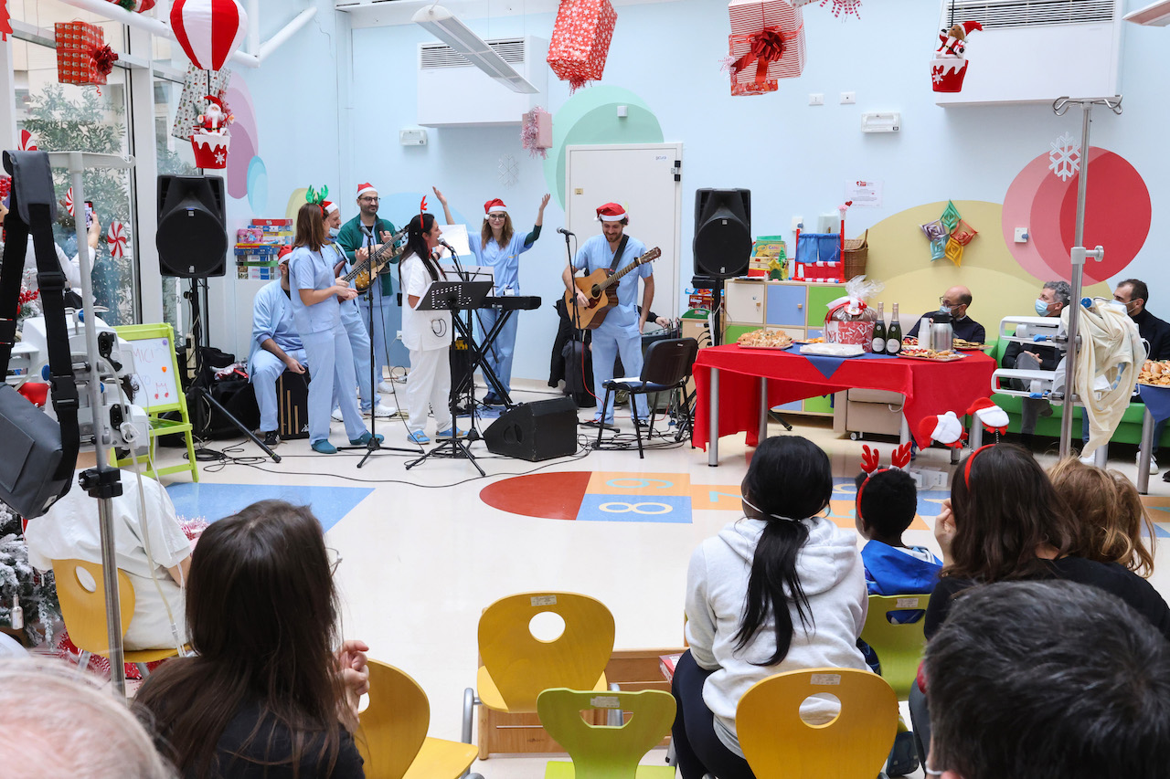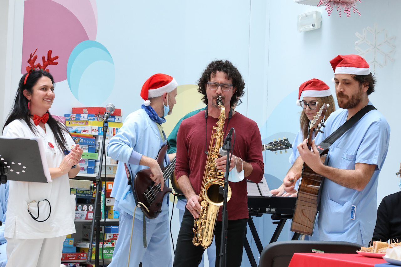 Dai regali consegnati con una “slitta” speciale Lamborghini alle canzoni suonate da medici e infermieri: un momento di spensieratezza insieme al personale medico sanitario e a psicologi, assistenti sociali e volontari