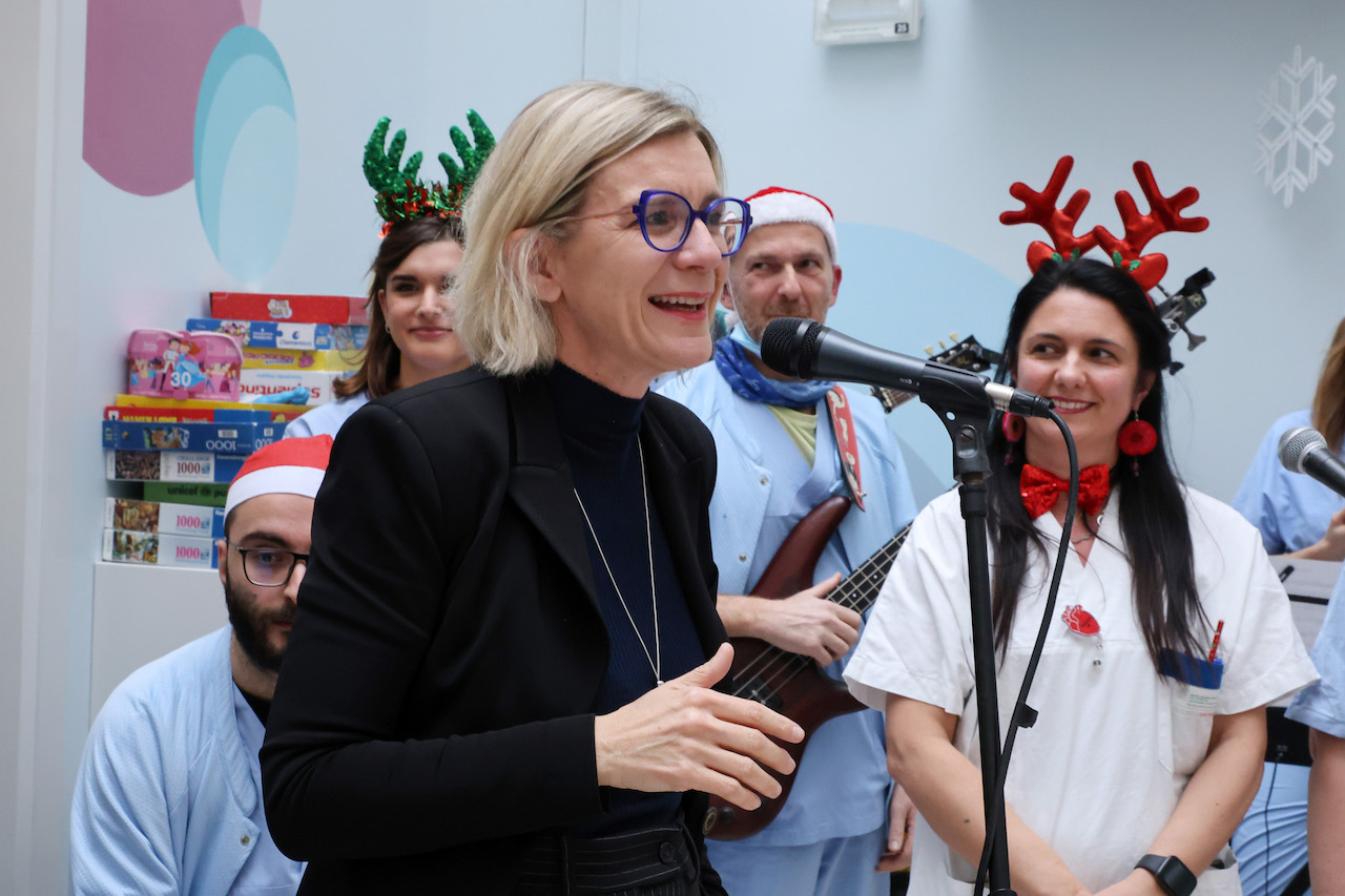 A portare i saluti istituzionali sono intervenuti l’assessore alla Cultura del Comune di Bologna l’assessore alla Cultura del Comune di Bologna Daniele Del PozzoDaniele Del Pozzo e la direttrice generale dell’IRCCS Chiara Gibertoni, accolti dalla presidente di Piccoli Grandi Cuori Paola Montanari, che ha sottolineato l’importanza del supporto emotivo e psicologico offerto ai piccoli pazienti e alle loro famiglie, e l’impegno dell’associazione nel dare forza e continuità al percorso di cura: “Questo è uno dei momenti più importanti dell’anno, porta un raggio di luce e normalità in ospedale. Dobbiamo ricordare che dietro ogni numero e ogni cartella clinica c’è un bambino, un ragazzo o un adulto che merita gioia, speranza e diritti. I nostri ragazzi sono cresciuti: oggi la sfida è continuare a sensibilizzare sulle loro esigenze, garantendo una qualità di vita dignitosa dentro e fuori l’ospedale”.