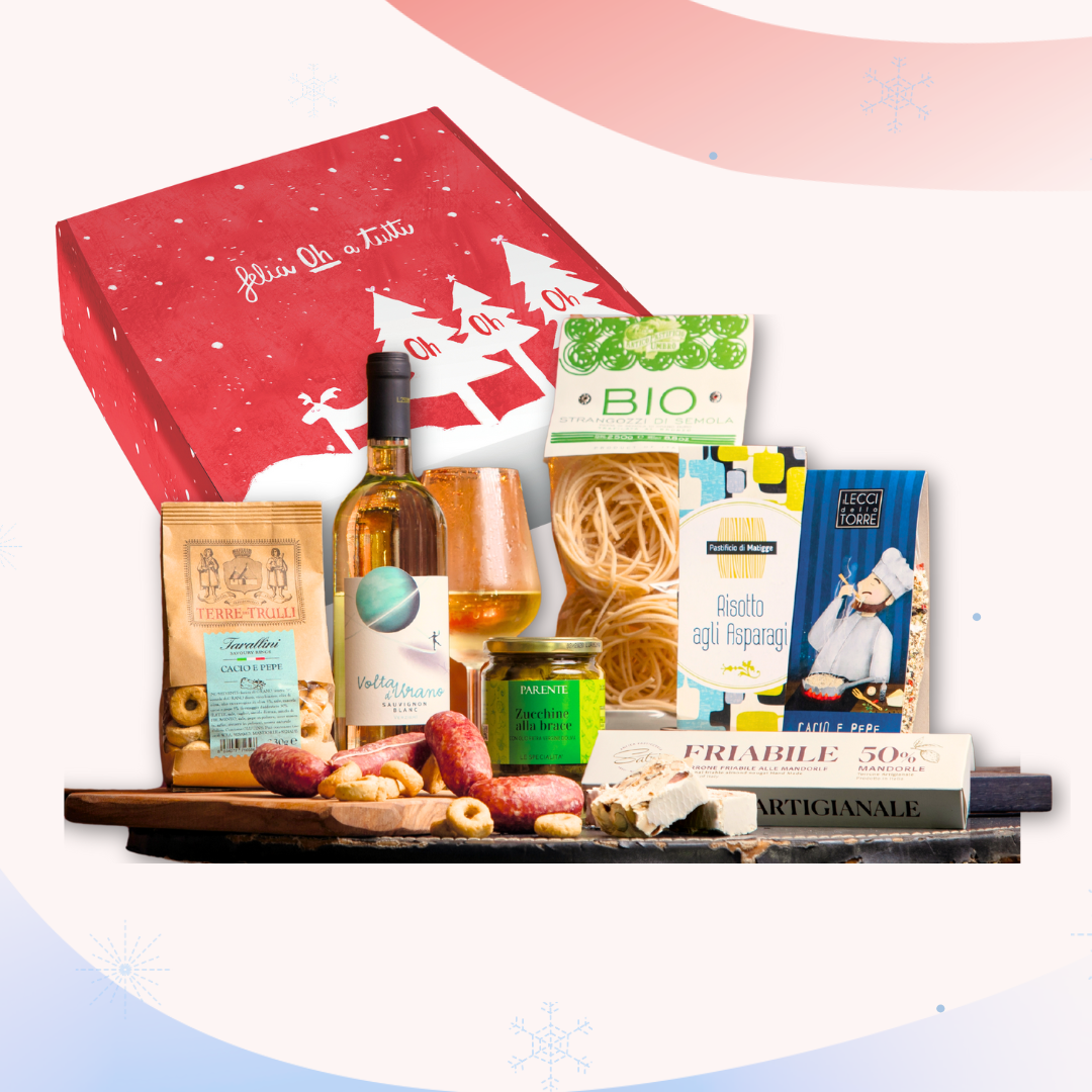 All’interno della Gift Box Solidale troverai 8 prodotti enogastronomici di pregio (scoprili nella descrzione completa) all’interno di una preziosa scatola in cartoncino serigrafato riutilizzabile.