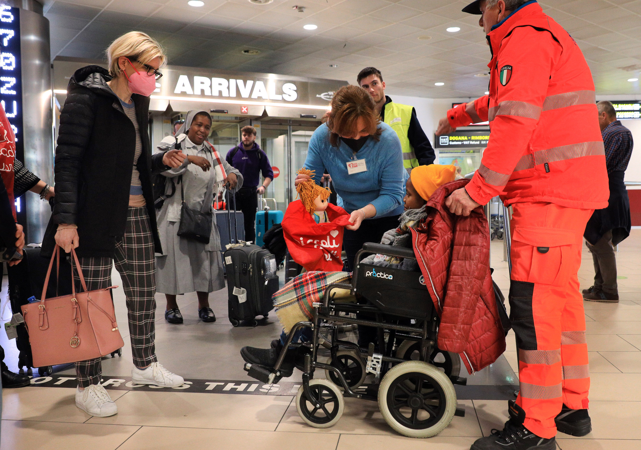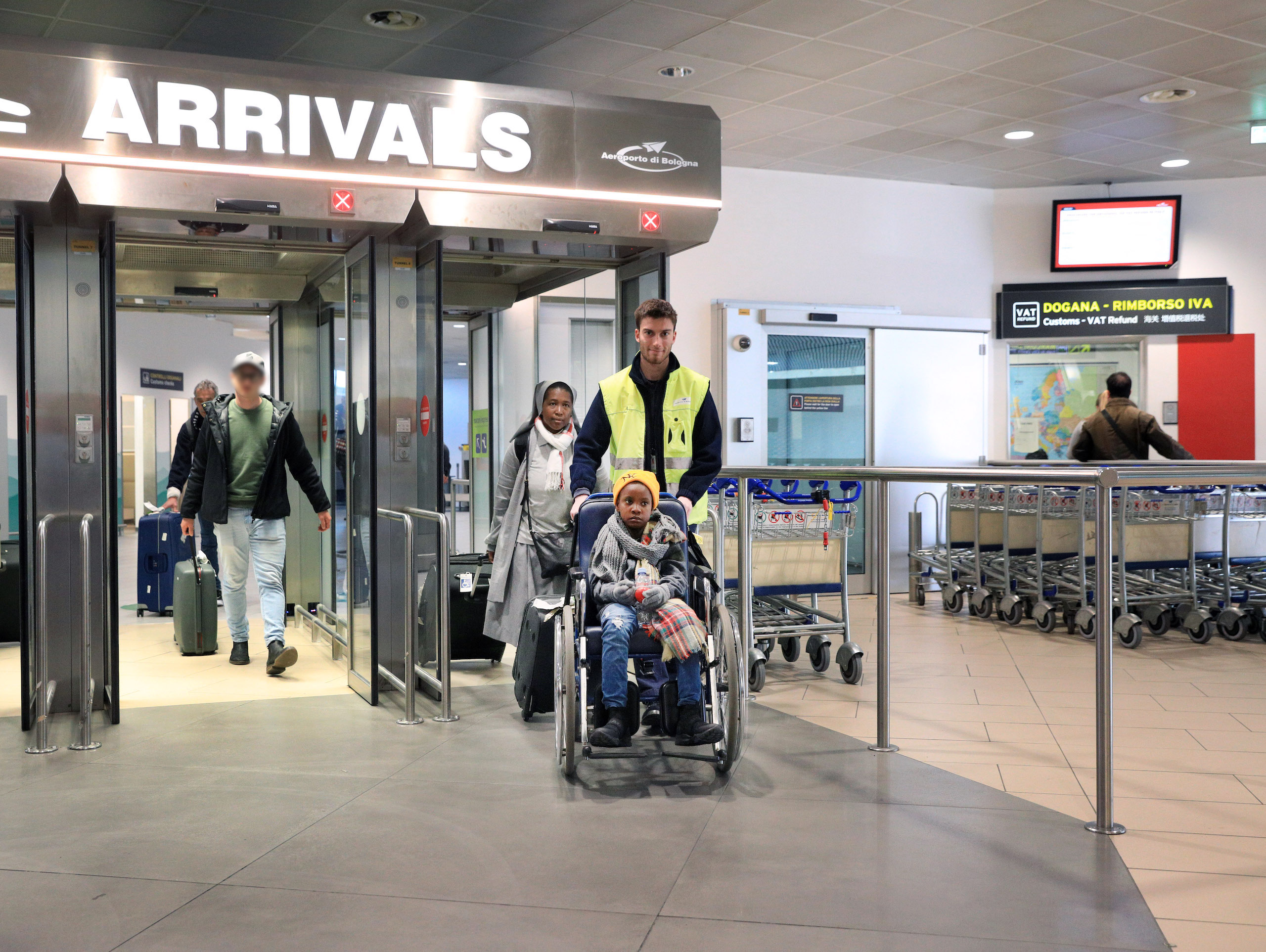 È arrivata in aeroporto a Bologna la bambina haitiana affetta da Tetralogia di Fallot, che sarà operata nei prossimi giorni