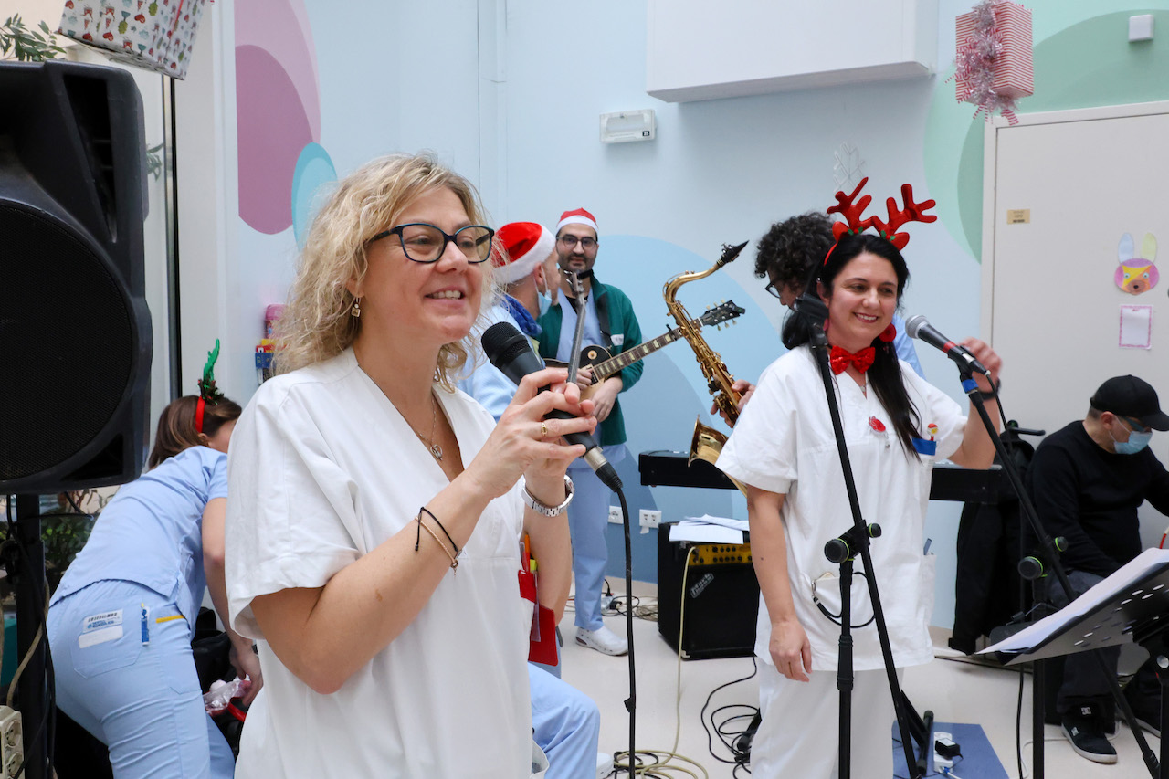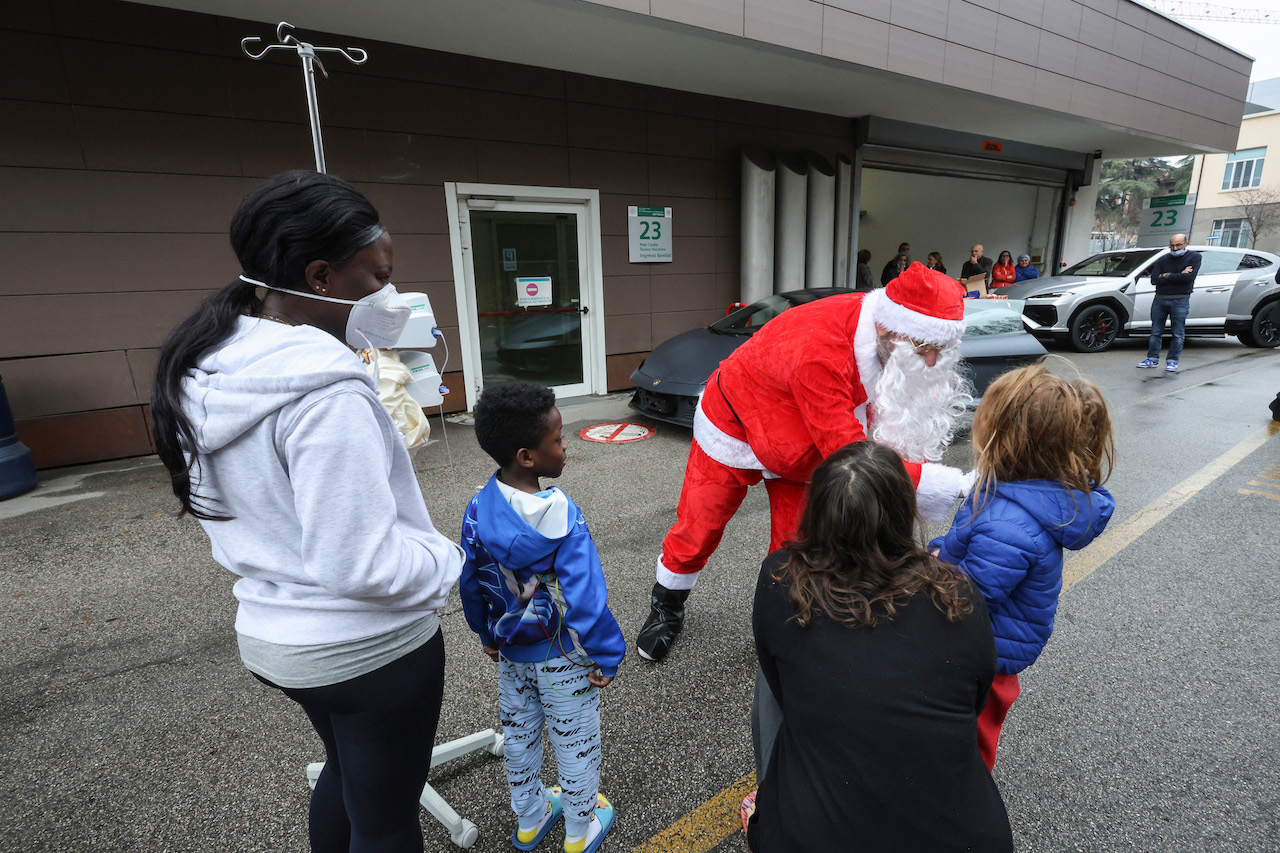 Dai regali consegnati con una “slitta” speciale Lamborghini alle canzoni suonate da medici e infermieri: un momento di spensieratezza insieme al personale medico sanitario e a psicologi, assistenti sociali e volontari