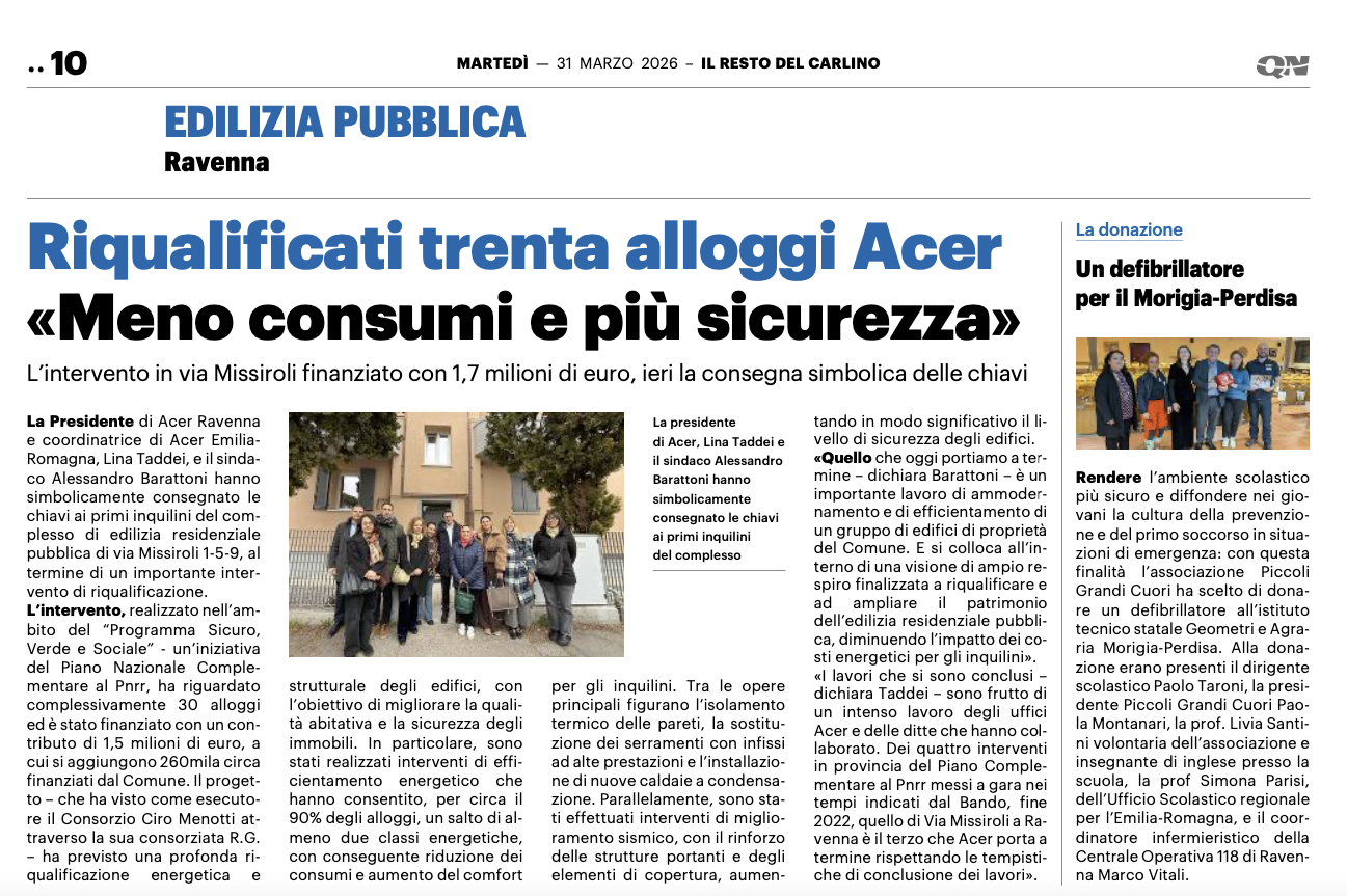 • “La scuola superiore Morigia-Perdisa di Ravenna ha un defibrillatore cardiaco grazie a una donazione”: leggi l’articolo su ravennaedintorni.it