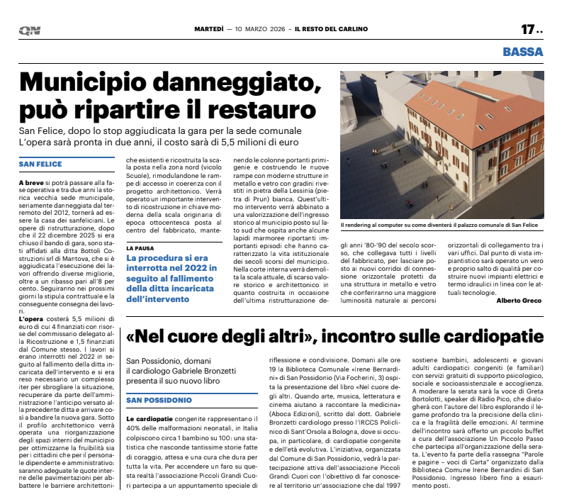 - “A San Possidonio un incontro tra medicina, arte e umanità con l’associazione Piccoli Grandi Cuori e il cardiologo dott. Gabriele Bronzetti”: leggi l’articolo su www.radiopico.it